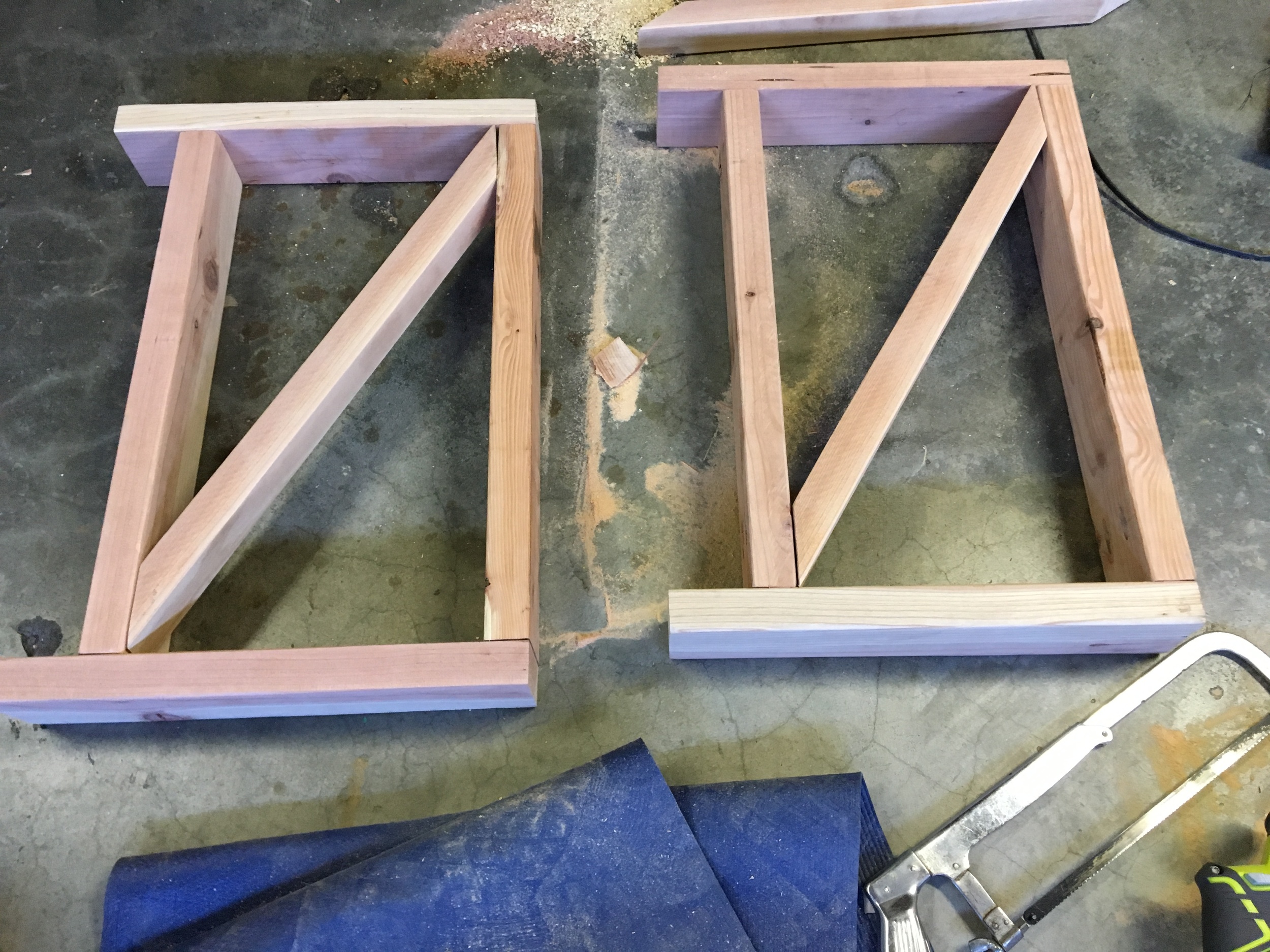 Then it was on to the side "x" pieces. This was really tough without a Miter Saw to gauge the angles. I did my best, but if I look back at what I built then and what I could build now, I can't like that they were a bit shit. But whatever...